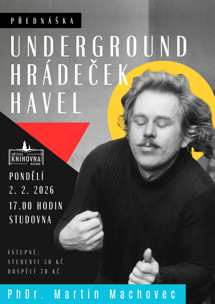 V pondělí 2. února představí PhDr. Martin Machovecod 17.00 hodin ve studovně Václava Havla jako spisovatele spjatého s českým undergroundem. Součástí přednášky budou čtené ukázky poezie a hudební doprovod. Vstupenky prodáváme ve studovně; dospělí 70 Kč, studenti 50 Kč.